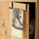 Kitchen towel with a cute illustration featuring cowboy boots filled with sunflowers. Original image painted with watercolors.