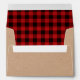 Rustic look Christmas card envelope done in a craft paper look, on the outside, and a red and black buffalo plaid pattern, on the inside. Personalize the black custom return address, on the back flap, to suit your needs. Matching holiday greeting cards are available.