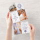 Rustic Crest Monogram 3 Photo QR Code Blue Wedding All In One Invitation