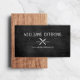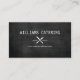 A crossed fork and knife logo paired with your name or business name becomes a unique brand mark on this personalized business card design. Set on a black wood background image for a rustic feel. Perfect for catering companies, chefs, restaurants, food trucks, meal planning businesses and more. © 1201AM