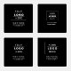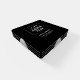 Modern black and white Custom branded Coaster Set set features a business logo design centered on the front and framed by custom text that can be personalized with the name of the company, location, slogan, website, or other info. Black background and white text colors can be modified.