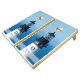 Natural Wood Cornhole Set, Royal Blue and Yellow bags