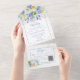 AVAILABLE WITH OR WITHOUT A QR CODE TO SCAN. So fresh and lovely, this all in one wedding invitation is part of the Field Flowers Bouquet Wedding Suite cards created by Simply Farmhouse Press. The soft blue, lavender, and yellow of the daisies, violets, and lavender are complimented with soft greenery. Simple, yet elegant. Add a QR code to your invitation so that gusts can quickly access your wedding Website for details, directions, menu options, and more, or add your gift registry Web URL. Personalized All-In-One invitations are a unique combination of both a beautifully printed custom invitation with an easy to tear off perforated RSVP postcard. And they are so easy to use! You simply fold, then seal the back flap with the three included clear stickers, and mail. And when your guests receive your custom invite, they just tear the perforated RSVP Card off and drop it back in the mail to you!
