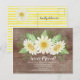 Beautiful hand painted watercolor white daisy flowers design featuring a springtime daisy & greenery arch swag set on a rustic wood background. Flip our design over to view a coordinating back for an extra special touch. Visit our shop to view our entire daisy moving collection.