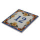 "custom house number plate", "personalized house no plaque", "personal customized text sign", "daisy flower casa ceramic tile", "mediterranean floral daisies flowers", "vintage green yellow purple art", "traditional summer vacation nature", "postage mailing post mail address", "farmhouse holiday home signage", "decorative rustic country villa"