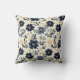 Rustic Dark Blue Beige Flower Folk Art Print Throw Pillow