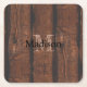 Rustic dark brown old wood Monogram Square Paper Coaster