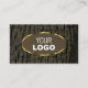 Make a lasting impression with this modern and elegant business card design featuring a rustic tree bark with a dark brown natural wood grain and a oval shimmery gold border.