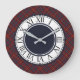 Rustic Dark Red and Navy Blue Plaid Large Clock