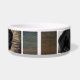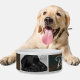 Rustic dark wood with dog`s name and 2 photos. This dog bowl comes with a dog`s name in white script and 2 photos - personalize the bowl with your dog`s name and insert two of your photos into the template.