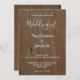 Rustic dark wood script country wedding invitation