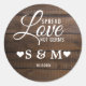 Rustic Dark Wood Spread Love Wedding Monogram Classic Round Sticker