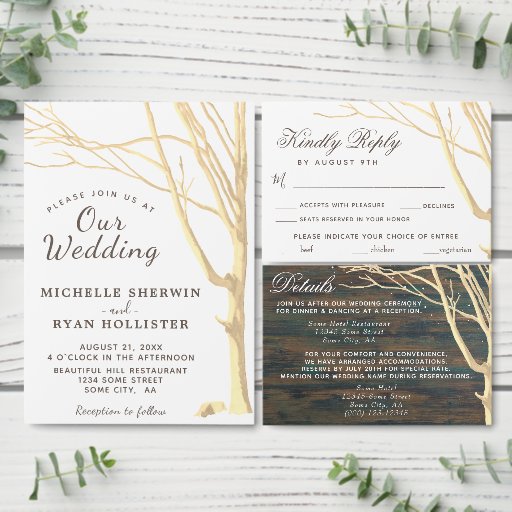 Rustic Dark Wood Tree Fall Winter Wedding Invitation