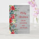 Merry Christmas for daughter and son in law card with green watercolor foliage, rustic wood pattern and pinecones and thoughtful verse.