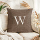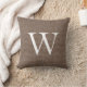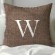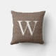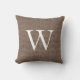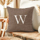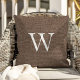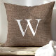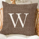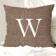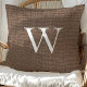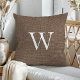 Rustic Deep Brown Faux Burlap Monogram Throw Pillow