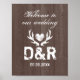 Deer antler brown barn wood grain rustic wedding poster. Welcome to our wedding.