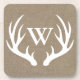 Rustic Deer Antlers Faux Burlap Family Initial Drink Coaster