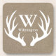 Rustic Deer Antlers Faux Burlap Family Name Coaster