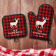 Rustic Deer Family Name Red Buffalo Plaid Oven Mitt & Pot Holder Set