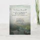Hunter themed funeral program with a deer standing by a pond in a glade surrounded by a forest, with printed watercolor texture and a misty morning look with a rustic feel. Add the order of service, a photo of your loved one, and acknowledgements.