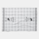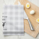 Customize your kitchen with this cute personalized towel featuring your family name or house name and year established in rich charcoal grey lettering accented with a deer illustration on a tonal plaid background.