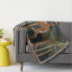 A quality printed throw has its advantages. This is a much finer weave throw than its loopier cousins, and though lighter, it is worth the investment for custom room accessorizing. The back is much prettier than the typical brown, and the fringe on the long sides very vivid, the selvage nicely done. Before photographing, I washed the throw in cold water, delicate, with a thicker woven throw the same size. On tumble dry low, this throw was dry in half the time as the other. This is a very practical quality if you use throws for furniture covers or to wrap up in frequently. The sleekness of the fabric makes it a great layer for accenting or protecting without the feeling of sitting on too much stuff. Perfect for napping or when you feel a light chill coming on. The color printing is beautiful and on this fabric, matched the design and color of my Photoshop image. This is an advantage for blending room fabrics and colors. The fringe on the short sides prints the colors from the design image and therefore varies from the side fringe. I streaked a white fractal line through the plaid pattern to give the illusion of weaving. This printed as crisp as an illusory thread, and put some white in the short side fringe, showing another advantage of print vs loomed- for artistic purposes, line lines, detail, and color integrity can be planned and preserved. My loomed throws have color limitations and more of a needlepoint texture. Print throws reproduce an exact image. The throw felt a little stiff straight out of the package, but this went away in the first delicate wash. Of course I searched the wash water for ink or bleeding and there was none.