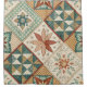 This seamless diamond patchwork pattern shower curtain captures the charm of folk-inspired quilting and decorative tiles, featuring intricate geometric and floral motifs. Each diamond segment showcases unique details—ranging from chevron lines and dotted tessellations to stylized flowers with swirling leaves. The muted teal, earthy browns, and warm orange-reds create a rustic, vintage aesthetic that feels both cozy and sophisticated. It has symmetrical arrangement and textured details.