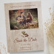 Rustic Dragonfly on Wood with Engaged Couple Photo. Simple design with rustic touches to announce your wedding or event. Soft tones and simple typefaces accompany the image that you select to complete the design.