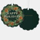Send a greeting that doubles as a keepsake with this paper ornament card from the Rustic Dried Orange and Pine Holiday Collection by Porch and Gable Design. The front features a watercolor pine wreath with dried oranges, winter greenery, cinnamon sticks, eucalyptus, pine cones, and festive brass bells on a rich dark green background. The text reads “Happy Holidays” with customizable space below for a family name, business name, favorite holiday phrase, or the year making it easy to add a personal touch. On the back, there’s room for your handwritten or printed message, turning this into a heartfelt holiday card and a charming ornament your loved ones can hang on their Christmas tree.
