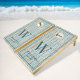 Personalized ocean theme rustic nautical wood background corn hole set with your own custom family name, monogram and established date.