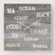 Summer ocean beach clock with rustic driftwood background and sea, ocean, beach handwritten script.