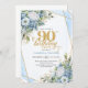 Rustic Dusty Blue 90th Birthday Floral Script Invitation