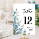 Make it easy for your guests to find their tables with these simple yet elegant table number cards. They feature a rustic boho chic floral design with a spray of blue flax or periwinkle wildflowers in shades of dusty blue and sage green. The title is written in elegant script lettering and the right justified text gives it a contemporary modern vibe.