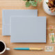 Rustic and elegant is this dusty blue envelope with a pretty eucalyptus pattern with blue floral. Include this as part of your essential wedding stationary.