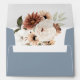 Rustic Dusty Blue Floral Wedding Address Envelope. Coordinate your wedding mail with this rustic dusty blue envelope, accented by soft peach and terracotta florals. A romantic touch for fall weddings, it features elegant typography and a timeless palette to complement countryside or boho wedding themes.