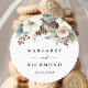 Rustic Dusty Blue Floral Winter Wedding Classic Round Sticker