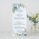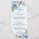 Pair with matching invitations, place cards, and table numbers for a cohesive, stylish look. Make your reception unforgettable with this dusty blue and gold floral menu — the perfect finishing touch for your elegant wedding day.
