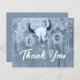 This sweet budget rustic dusty blue western boho sunflowers Thank You flat card is a great way to thank your guests after your big wedding day. Rodeo cowboy bull skull with horns country floral texture, barn wood vintage bohemian, farmhouse cowgirl style design. Look for matching products in this collection. Image copyright Marg Seregelyi Photography.