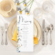 Discover the epitome of rustic elegance with our rustic wedding long menu, where timeless beauty meets nature's delicate grace. Against a pristine white backdrop, a hand-painted watercolor bouquet emerges, showcasing a harmonious blend of dusty blue and soft yellow wildflowers, alongside the purity of white daisies and roses. As if plucked straight from a sun-kissed meadow, this invitation captures the essence of unspoiled beauty and unfurling love. The soft hues and intricate detailing of the wildflower bouquet set the stage for a wedding that's as natural as it is enchanting. Invite your guests to share in the charm of your love story with an invitation suite that embodies the warmth of your connection. Choose our design to convey the sincerity of your journey, inviting loved ones to witness the blooming of a love that's as timeless as the landscape itself. This card is part of the Rustic Dusty Blue Wildflowers & Daisies wedding suite collection created by Simply Farmhouse Press.
