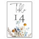Rustic Dusty Blue Wildflowers & Daisies Shower Table Number