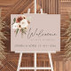Rustic Dusty Pink Green Script Wedding Welcome Sign. Welcome your guests with this rustic wedding sign featuring dusty pink tones, greenery, and an elegant handwritten script. Perfect for fall weddings or countryside ceremonies, this design blends soft botanical florals with modern calligraphy on a warm neutral backdrop.