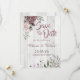 A rustic 'Save the Date' card with clusters of painted roses in shades of dusty rose on a rustic white wood background. You can add your personal details in the edit design tab. This is part of a beautiful wedding suite with matching invitation and other wedding essentials.