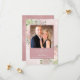 This wedding save the date card is simple, rustic, elegant, and beautiful. It features your photo in a mauve pink frame surrounded by a bevy of hand painted watercolor roses, blossoms, eucalyptus leaves and greenery on a marbled dusty rose background. The title reads: Save the Date in lacy script calligraphy with room for the names of the couple, the date and location. The back has a small bouquet tied with a white bow. Wonderful way to let your friends and family know about your upcoming wedding.