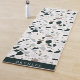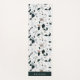 Rustic earthy terrazzo stone pattern, personalized yoga mat. Trendy terrazzo pattern in shades of blue, tan and deep hunter green with coordinating green color block tab with name.