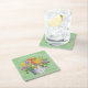 Rustic Easter Eggs Floral Basket on Green Square Paper Coaster