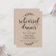Plain white envelopes are included with paper invitations and will come to fit the invitation size you select. If you don’t need the envelopes, you may choose to not receive them by selecting the dropdown below "Envelopes" and choosing "None." If you’d like to have a design on your envelopes, you can browse all of these available envelopes to find the design that complements your Rustic Elegance Rehearsal Dinner Invitation Kraft.