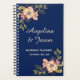 Rustic, elegant, country, watercolor blush pink flowers, navy blue wedding planner with couple names.
