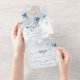 Rustic Elegant Dusty Blue Floral All In One Invitation