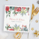 Wedding reception personalized paper napkin featuring rustic modern watercolor Christmas traditional botanical borders with holly berries, red and ivory flowers, pine cone, fir boughs, seasonal foliage, and red typography script.++++++++++++ Ideal for your winter, Christmas floral, elegant rustic themed weddings. +++++++++++++ Personalize it with the bride's and groom's names and wedding details!