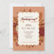 Celebrate in style with this elegant rustic Thanksgiving dinner invitation, featuring warm terracotta tones, detailed autumn floral, and a charming scalloped frame. Perfect for family gatherings, fall parties, and festive holiday celebrations. Fully customizable for your event details.